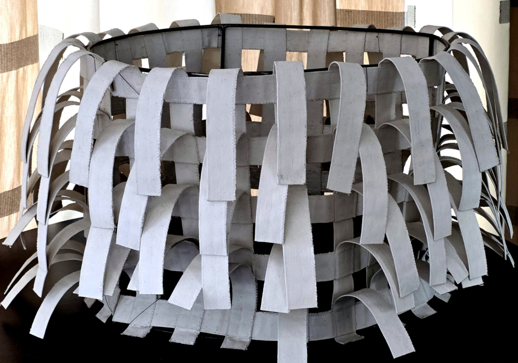 Lampshade-shaped structure of sewn and white-dyed textile